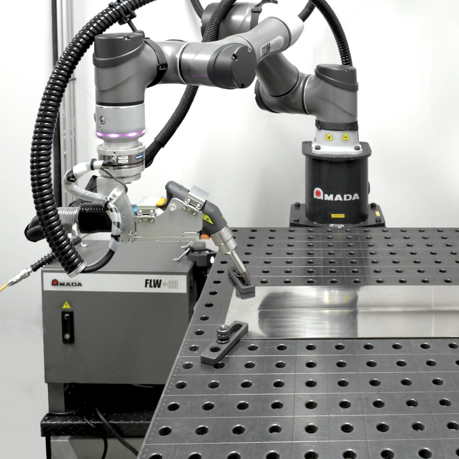 レーザ溶接機 FLW-1500MT専用に開発された協働ロボットです。接作業の自動化を実現します。オペレーターの作業負担を軽減しつつ、長時間でも安定した高品質な溶接を可能にし、生産性と加工品質の向上に貢献します。ダイレクトティーチング機能により、ロボットの動作プログラムも直感的に作成でき、少量多品種の生産にも柔軟に対応します。